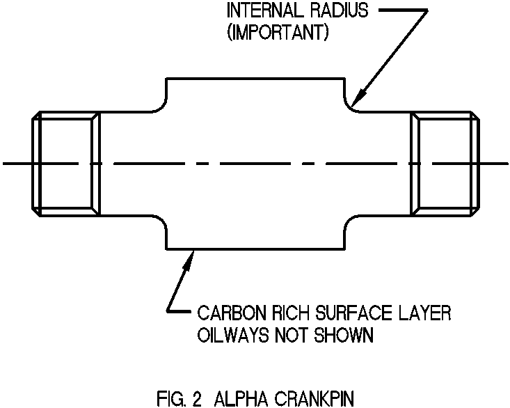 The AMC Crankpin: - Fig. 1 shows AMC design. The major loads are carried by the medium carbon - EN24 - steel core. Since this is cylindrical there are no inherent weakening features. Over this is pushed a sleeve of high carbon - EN25 - steel to give a bearing surface and act as a spacer. The machining cost of this design is high (although it is a very neat solution) since it is essential that the sleeve does not move on the inner load-bearing core or wear would rapidly ensue between the sleeve and the pin proper.
